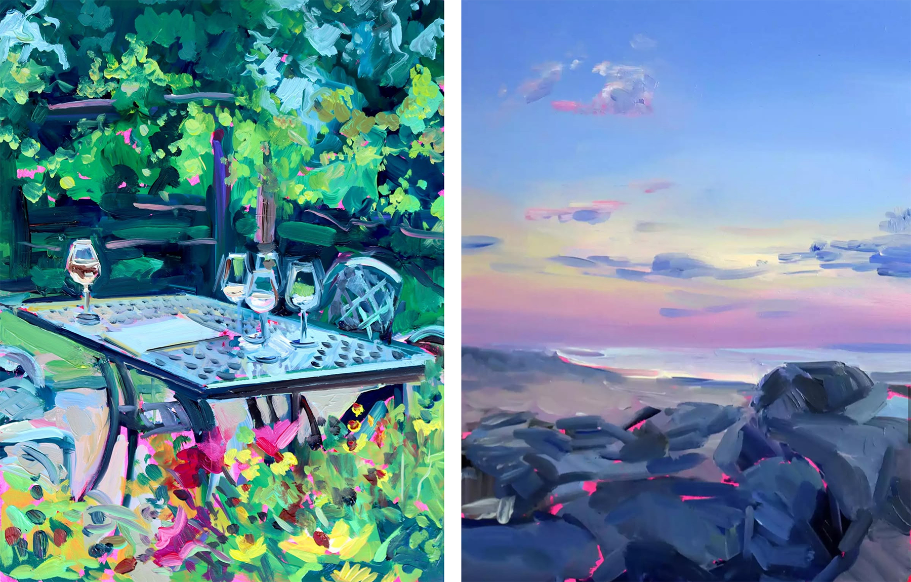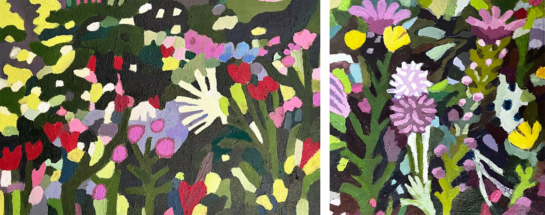 Callie Connors. “Waiting for Spring” and “Purple Garden.”